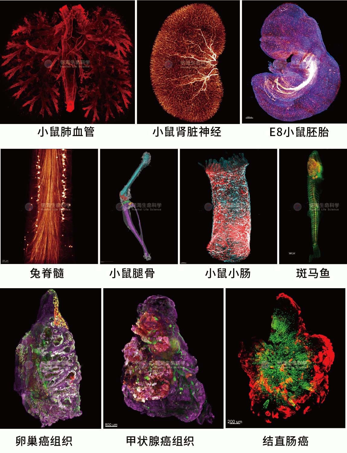 Nuohai Life Science was established in 2017 and was recognized as a National High-tech Enterprise in 2020. With customer-oriented value in heart, Nuohai Life Science has earned a highly dependable reputation among the customers with comprehensive life science solutions and sound after-sales services. We provide one-stop scientific research services for tissue clearing, immunofluorescence labeling, high-resolution large tissue 3D imaging, image analysis and data storage.