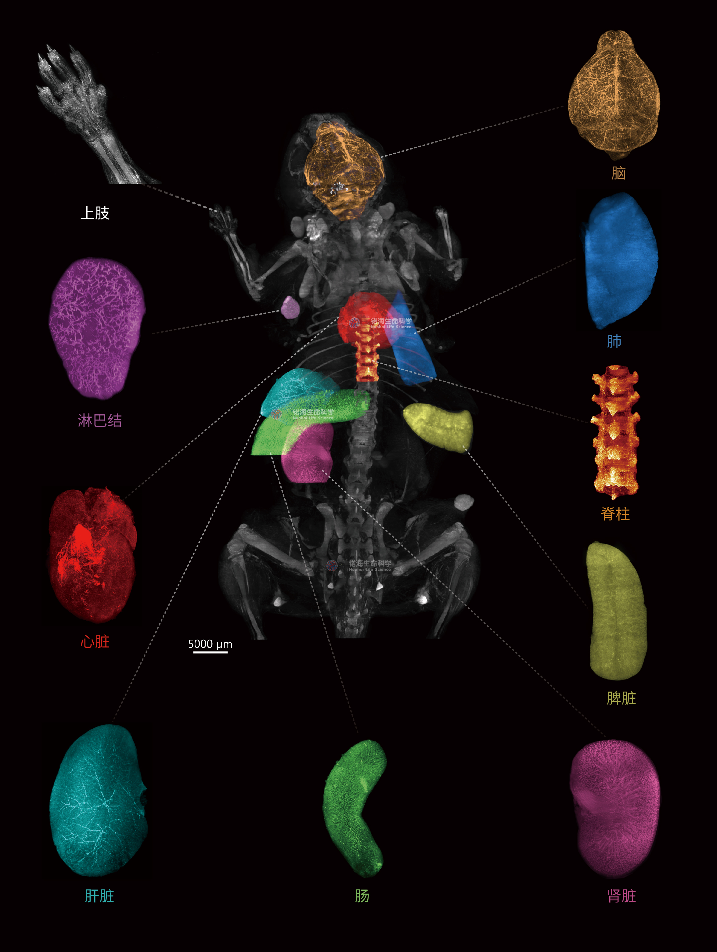 锘海生命科学是一家聚焦于研究和提供生物组织透明化3D显微镜成像及结构分析解决方案的高新技术企业。基于可逆性组织透明化、荧光标记、平铺光片显微镜技术,从微米级到10厘米级样本、纳米级高分辨的生物组织3D成像和图像分析系统,已广泛应用于脑和神经科学、肿瘤与免疫、胚胎发育、皮肤、泌尿与生殖、消化与吸收、骨科、生物仿生学等生命科学研究及药筛药物评价。结合自研VR设备和AI智能学习系统,锘海将生物大组织3D成像技术应用于3D临床病理诊断,提供完整病理组织样本的丰富3D结构信息,打造下一代3D数字病理精准诊断系统。