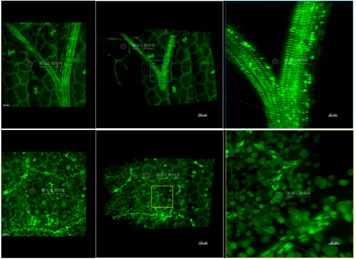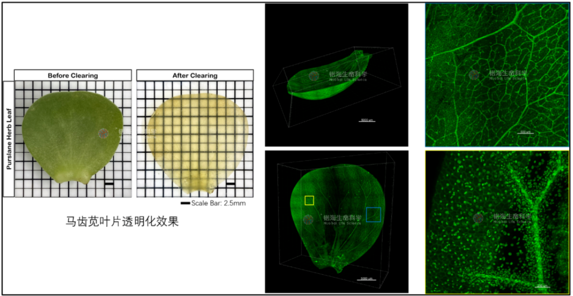 图3. 马齿苋整个叶片透明化后使用锘海LS18平铺光片显微镜进行3D成像效果
