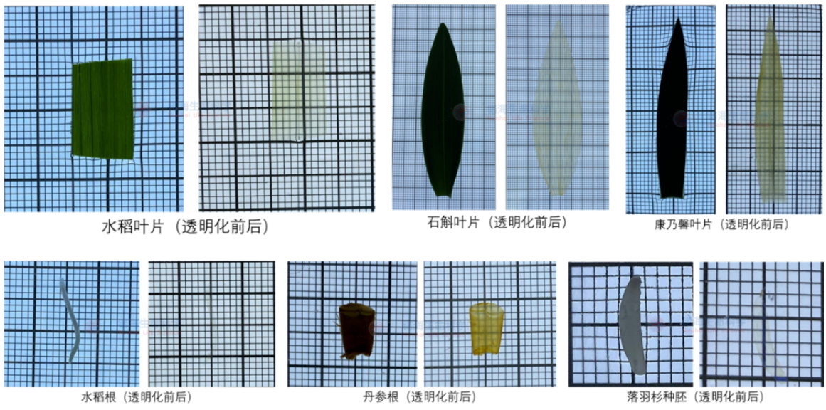 图5. 各类植物组织透明化效果